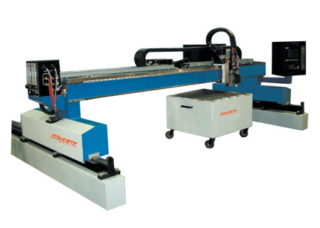 CNC系列数控切割机是一种大型的切割机床,采用双边驱动,双边同步控制,由计算机对反馈回来的位置误差进行计算并发出控制指令,以保证双边精确同步。纵、横向均采用无间隙齿合传动方式,整机运行平稳、精度高、保持性好。适合于火焰和等离子切割方式一,最大切割厚度320mm.